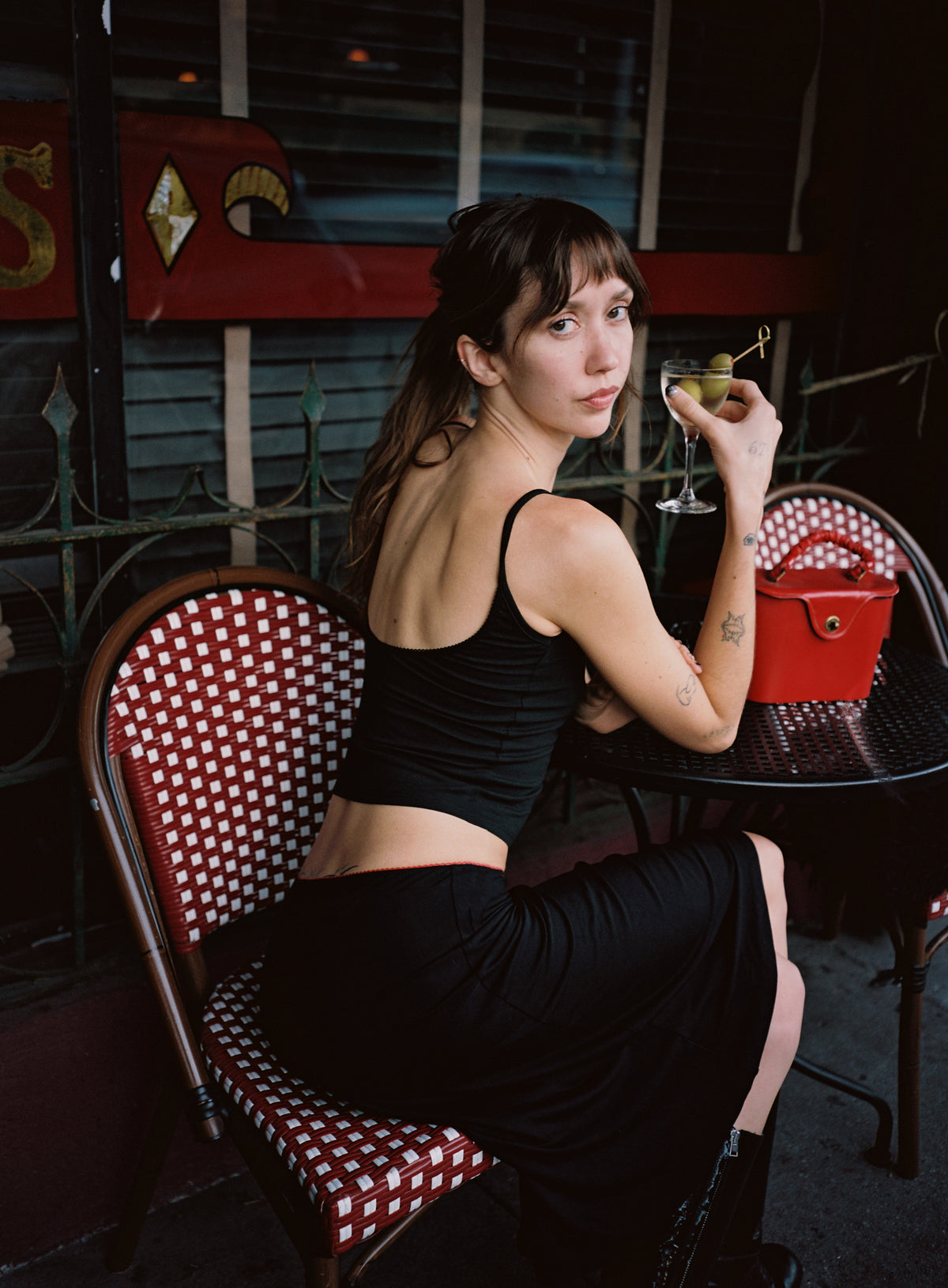 Bias midi slip skirt in onyx/cherry
