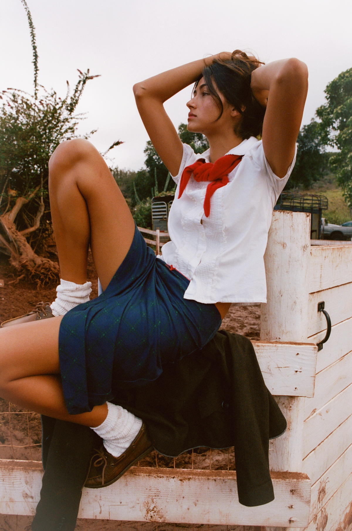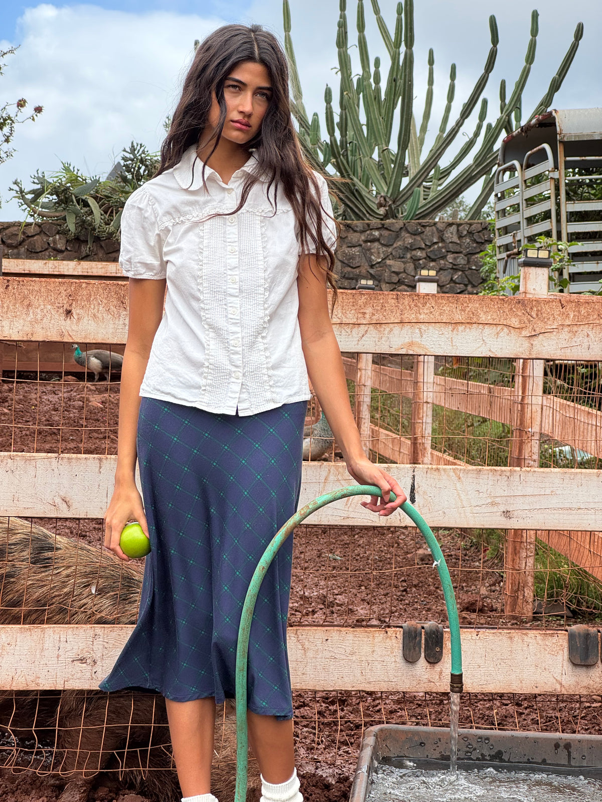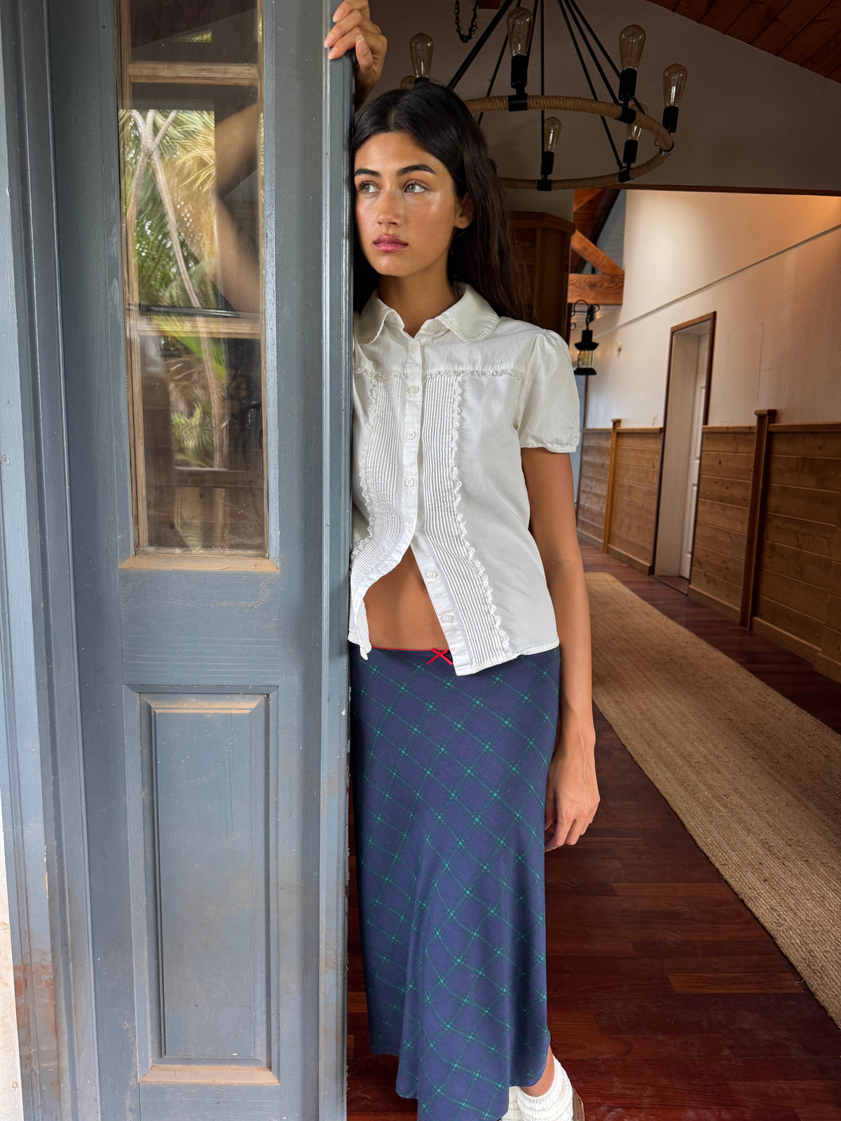 Bias midi slip skirt in oxford