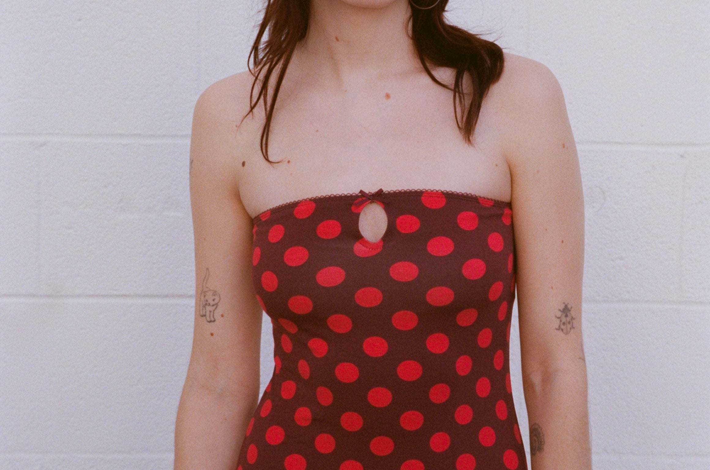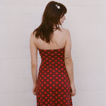 KEYHOLE TUBE DRESS IN SCARLET DOT