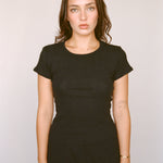 Meet the Perfect T-shirt—slightly fitted, mid-length, and designed to hug you in all the right places. It’s soft, breathable, and hits just above the hips for a flattering everyday fit. Made in our breezy pointelle, which is knit and sewn in LA and our signature cotton jersey, it’s an easy essential you’ll want to wear on repeat. Pair it with your favorite denim for an effortless, put-together look. Please note that the Swan color way is more sheer than the other color ways.