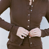 Our square neck camisole is crafted from breathable organic cotton knit with delicate pointelle detailing, inspired by vintage menswear and woven in Los Angeles. It features a snug fit, medium length hem, a square neckline in both the front and back, and a bra-friendly design. A satin bow at the center front adds a sweet touch. Pair it with our matching pointelle cardigan or easy pants for a cozy set. Please note that the Swan color way is slightly sheer.
