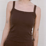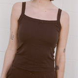 SQUARE NECK POINTELLE CAMI IN COCOA