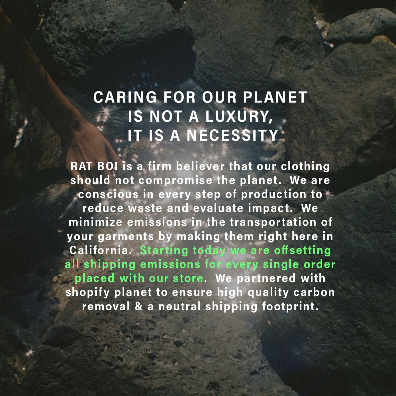 At RAT BOI we are commited to offseting all carbon emmissions from shipping for our online orders. These offsets create completely carbon neutral shipping and also fund organizations that aid in carbon sequestration healing our planet, and our soils.