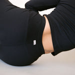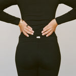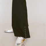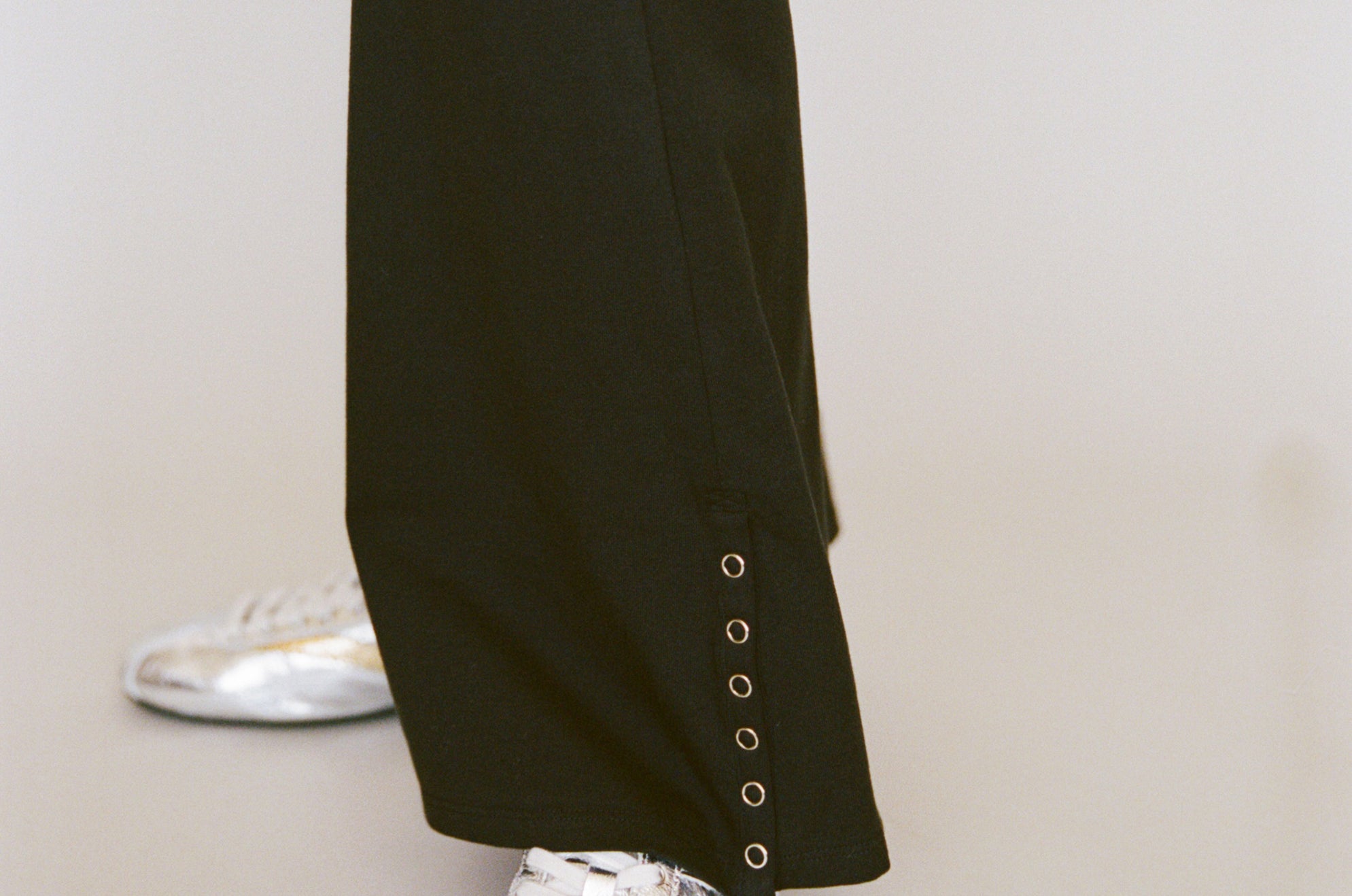 A fitted cotton-spandex pant with a soft, enzyme-washed hand. Designed with a contour seam at the back for a flattering fit and a bell-bottom leg finished with six functional snaps that can be worn open or closed. Sporty and easy to wear for lounging, errands, or light workouts. These pants pair nicely with our Butterfly Snap Top.
