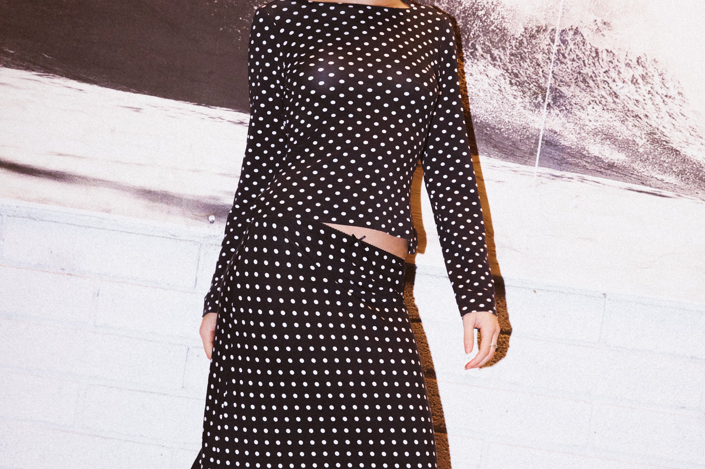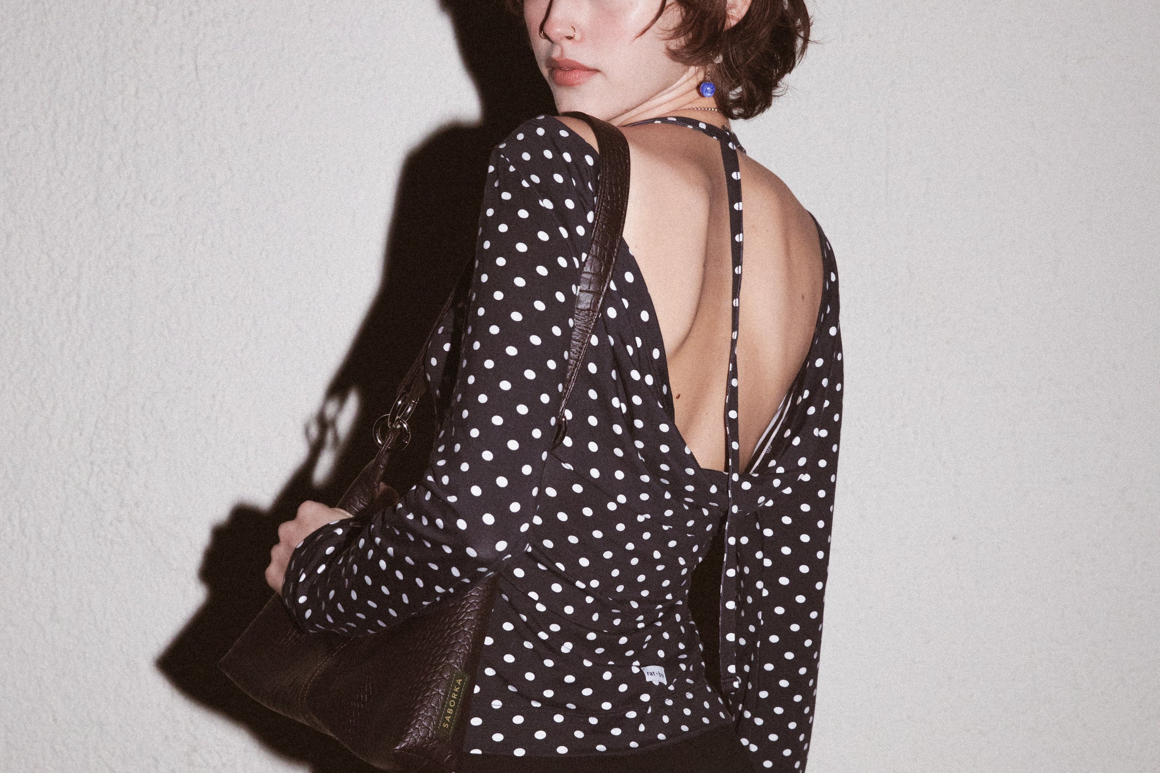 COWL BACK LONG SLEEVE IN DOMINO DOT
