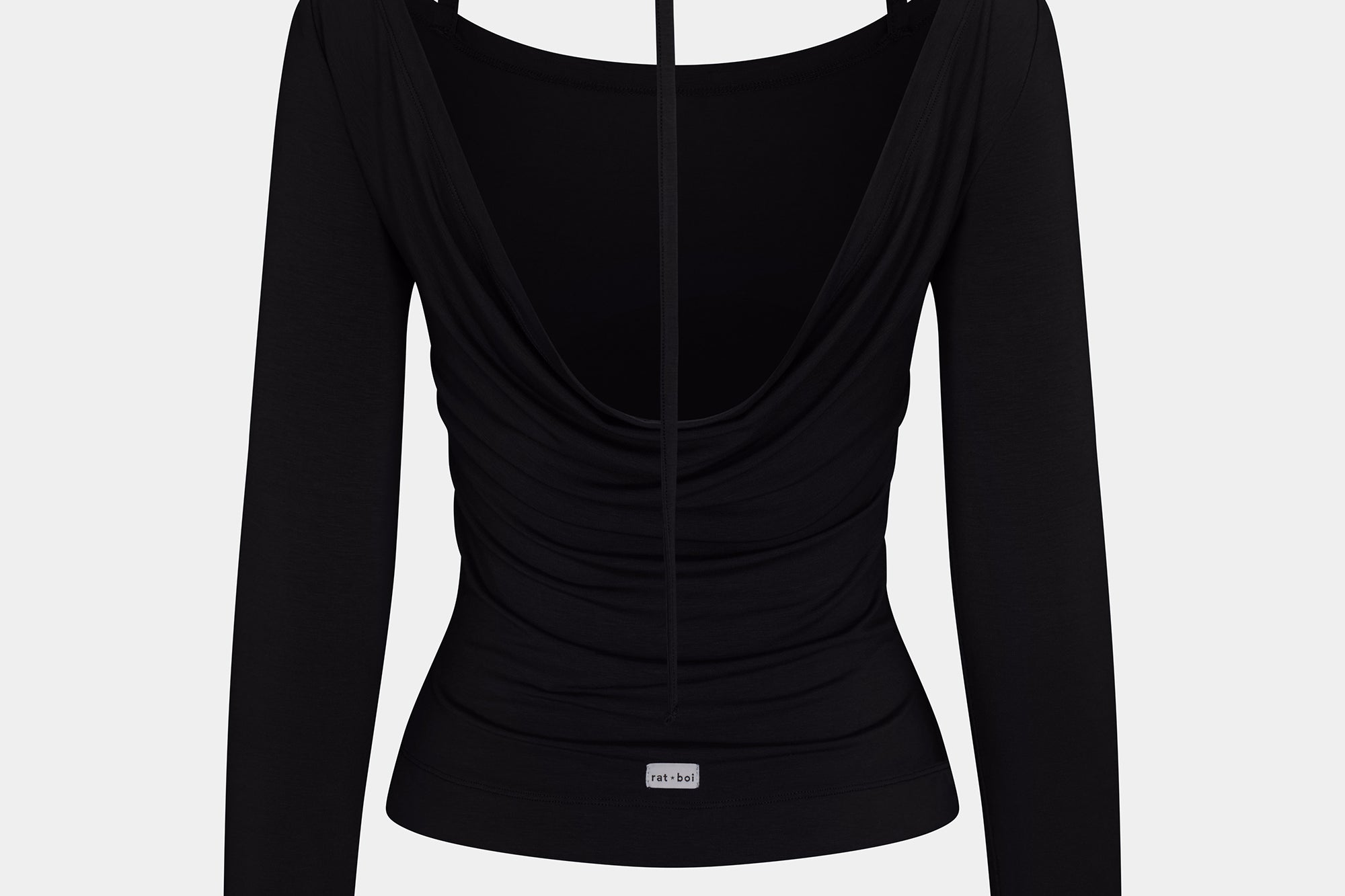 Our new long sleeve top is made from silky soft, lightweight eco-TENCEL™ with a drapey, comfortable fit. The front features a clean boat neckline, while the back opens into a flattering cowl shape with a subtle halter strap to keep the shoulders in place. Soft, effortless, and easy to style, it’s an elevated basic you can pair with denim, skirts, or your favorite trousers.