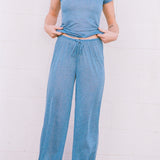 Our Drawstring Lounge Pant is an effortless staple perfect for lounging, slow mornings, or easy everyday wear. Made in Los Angeles from an ultralight, soft, slightly sheer deadstock stripe blend, this breathable fabric feels airy and barely there, making it ideal for all-day comfort. They feature a relaxed, baggy fit with a full-length hem and adjustable drawstring waist for an easy, laid-back silhouette. Pair them with our 3/4 Sleeve Top for a matching, lounge-all-day look.
