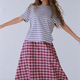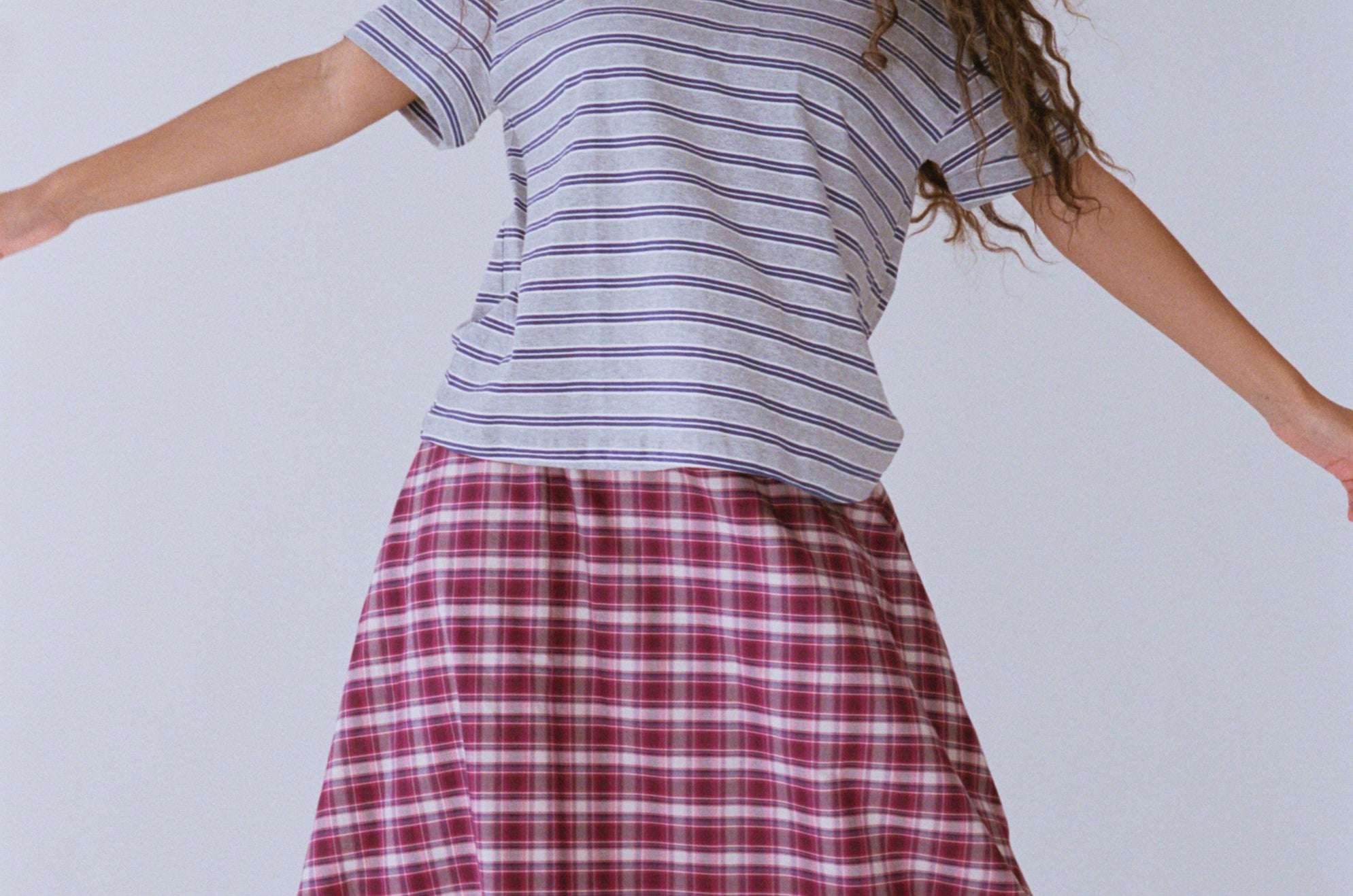 The Dream Skirt is an ankle-length style made from over two yards of lightweight, breathable 100% woven cotton. Designed with an elastic waistband, side seam pockets, and a-line skirt, it drapes beautifully to create a flattering silhouette on every body. Wear it high at the waist for a classic look, or lower on the hips for a relaxed fit. Effortless and versatile, it’s easy to dress up or down with a scoop back cami. Ethically made in Los Angeles.