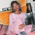 The Dream Skirt is an ankle-length style made from over two yards of lightweight, breathable 100% woven cotton. Designed with an elastic waistband, side seam pockets, and a-line skirt, it drapes beautifully to create a flattering silhouette on every body. Wear it high at the waist for a classic look, or lower on the hips for a relaxed fit. Effortless and versatile, it’s easy to dress up or down with a scoop back cami. Ethically made in Los Angeles.