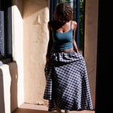 The Dream Skirt is an ankle-length style made from over two yards of lightweight, breathable 100% woven cotton. Designed with an elastic waistband, side seam pockets, and a-line skirt, it drapes beautifully to create a flattering silhouette on every body. Wear it high at the waist for a classic look, or lower on the hips for a relaxed fit. Effortless and versatile, it’s easy to dress up or down with a scoop back cami. Ethically made in Los Angeles.