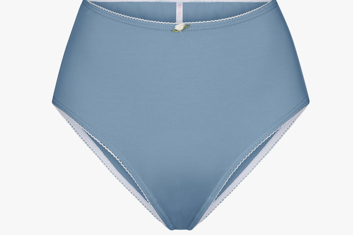 Our flattering high rise undies are designed to compliment and comfort your body. Our signature soft, breathable organic cotton provides comfort all day. Each pair shows a hint of cheek and slopes up at the hips to highlight your natural curves. They feature lace trim and a satin rosebud at the center front.