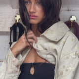 - Lace trim & satin bow in the center front