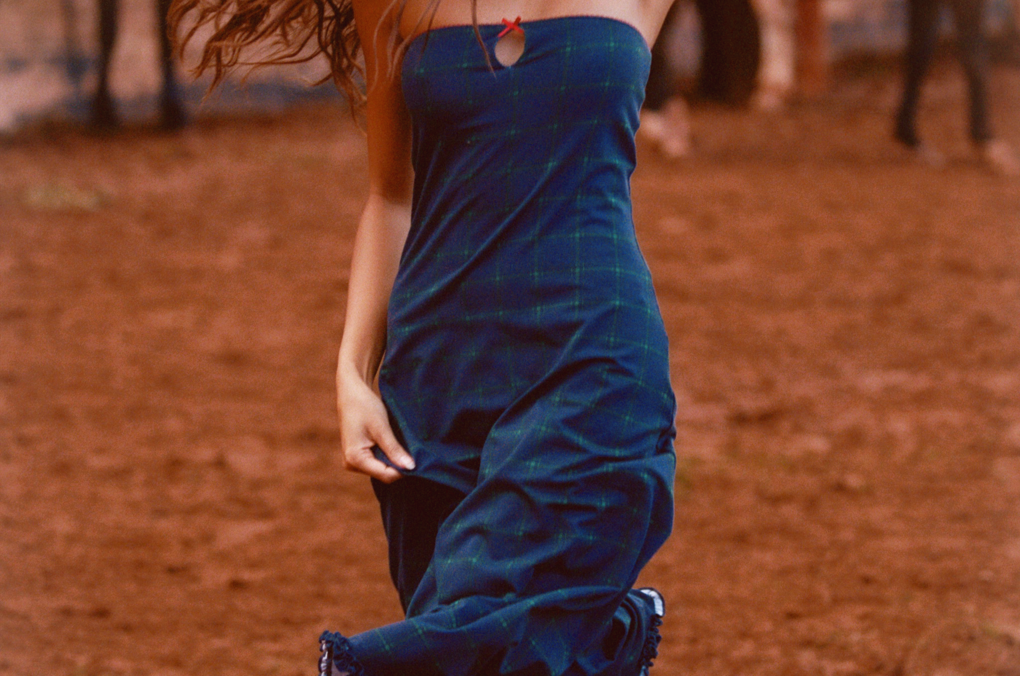 A feminine strapless dress featuring an A-line, mid-length skirt that moves effortlessly with you. The bust features a built-in shelf bra for added coverage and comfort, with a charming keyhole detail for a hint of playful charm. Delicate lace trim and a satin bow add a soft, romantic touch, and the look is finished with a ruffled hem for the perfect flutter.