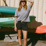 The Boifriend T-Shirt is an easy everyday staple with a relaxed, oversized fit. Made from a lightweight cotton blend, it features a boxy silhouette, pre-rolled sleeves, and a playful stripe pattern with a pop of color. Comfortable and versatile, it’s designed to be worn again and again. Ethically made in Los Angeles.