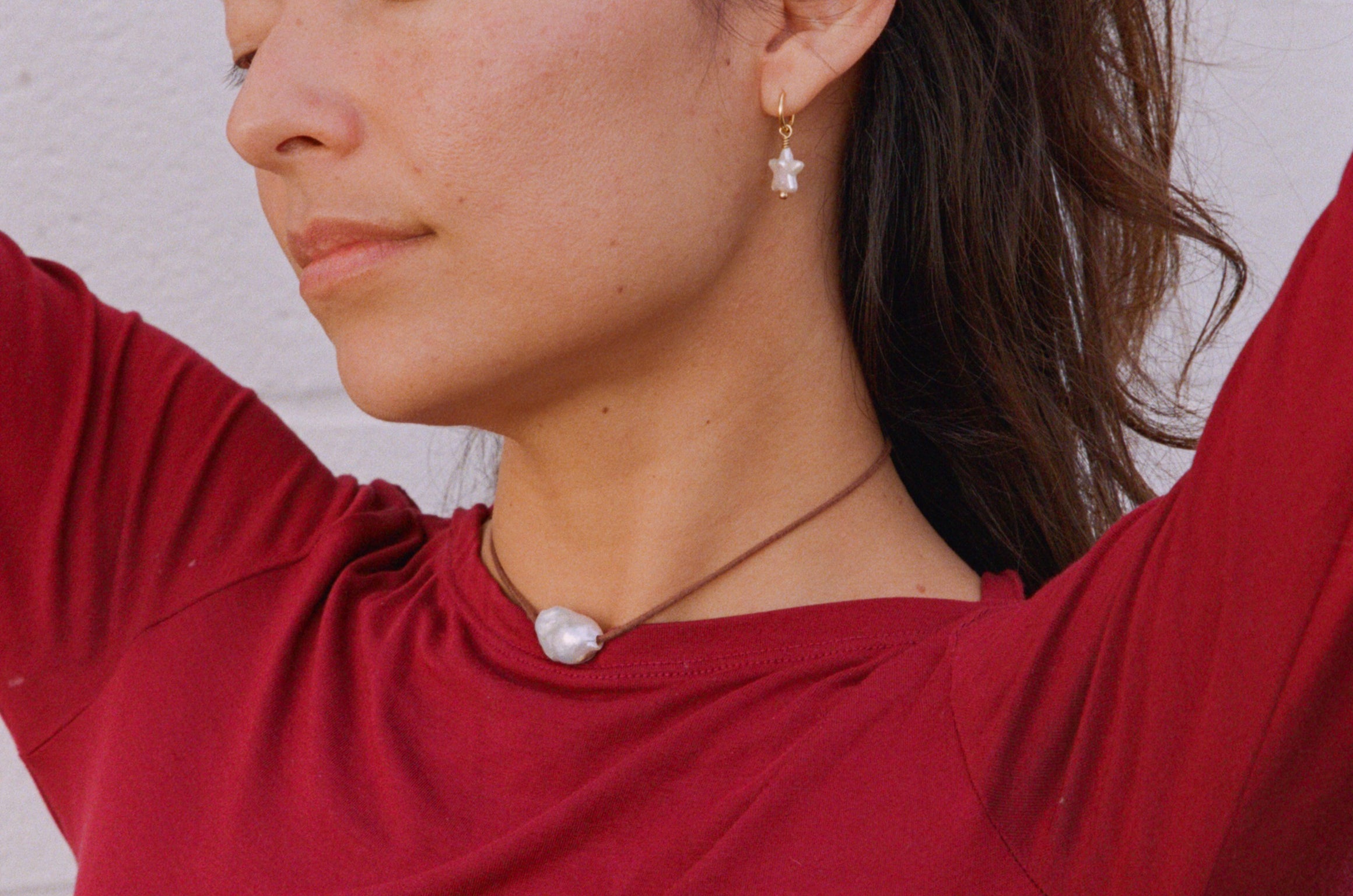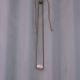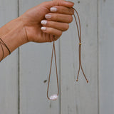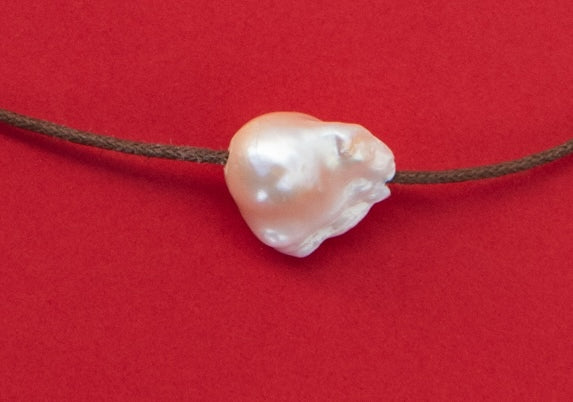 A single baroque pearl on a waxed cotton cord, adjustable from choker length to mid chest level. A small batch exclusive made with love in Ventura, CA by our dear friend, Alix Camp (@earthtoalix)