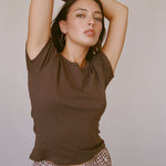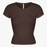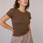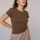 PERFECT T-SHIRT IN COCOA POINTELLE