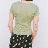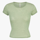 Meet the Perfect T-shirt - slightly fitted, mid-length, and designed to hug you in all the right places. Crafted from an ultralight deadstock fabric, this sheer top offers an incredibly soft and breathable feel, making it ideal for layering or wearing on its own. It hits just above the hips for a flattering everyday fit.