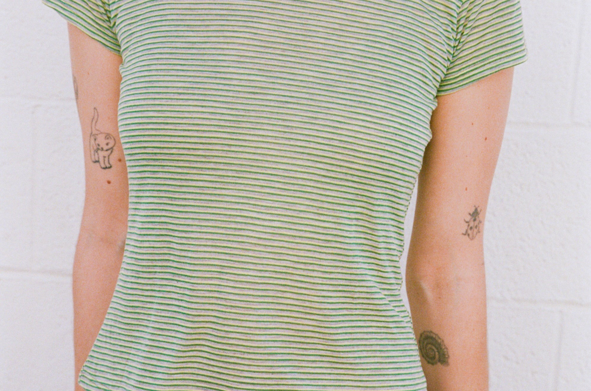 Made in Los Angeles from a soft, slightly sheer deadstock stripe blend, this top is effortless and easy to style. Pair it with our Drawstring Lounge Pant for a cozy, lounge-all-day look.