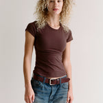Meet the Perfect T-shirt—slightly fitted, mid-length, and designed to hug you in all the right places. It’s soft, breathable, and hits just above the hips for a flattering everyday fit. Made in our breezy pointelle, which is knit and sewn in LA and our signature cotton jersey, it’s an easy essential you’ll want to wear on repeat. Pair it with your favorite denim for an effortless, put-together look. Please note that the Swan color way is more sheer than the other color ways.