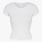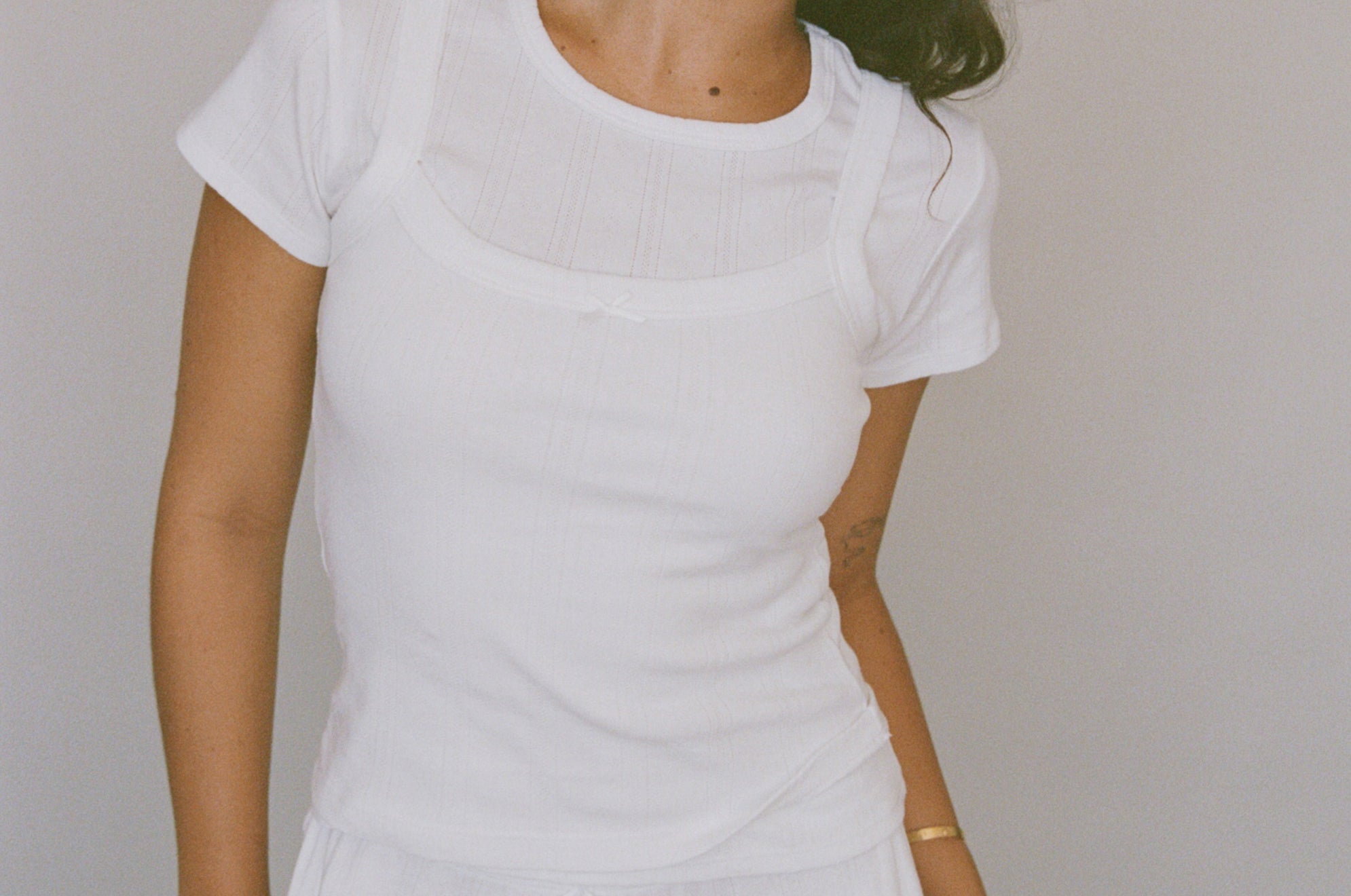 Meet the Perfect T-shirt—slightly fitted, mid-length, and designed to hug you in all the right places. It’s soft, breathable, and hits just above the hips for a flattering everyday fit. Made in our breezy pointelle, which is knit and sewn in LA and our signature cotton jersey, it’s an easy essential you’ll want to wear on repeat. Pair it with your favorite denim for an effortless, put-together look. Please note that the Swan color way is more sheer than the other color ways.
