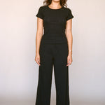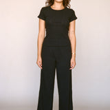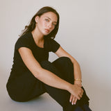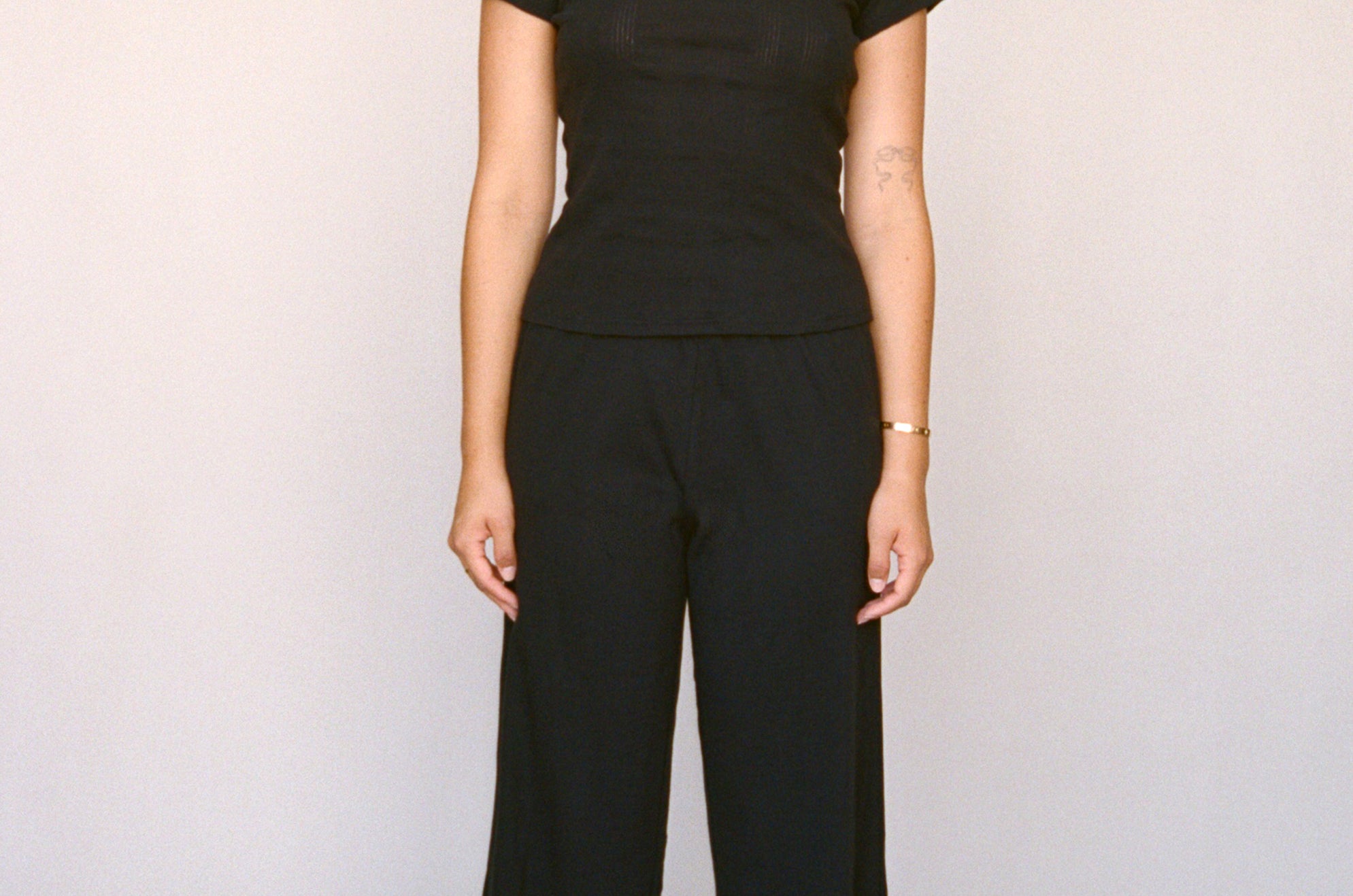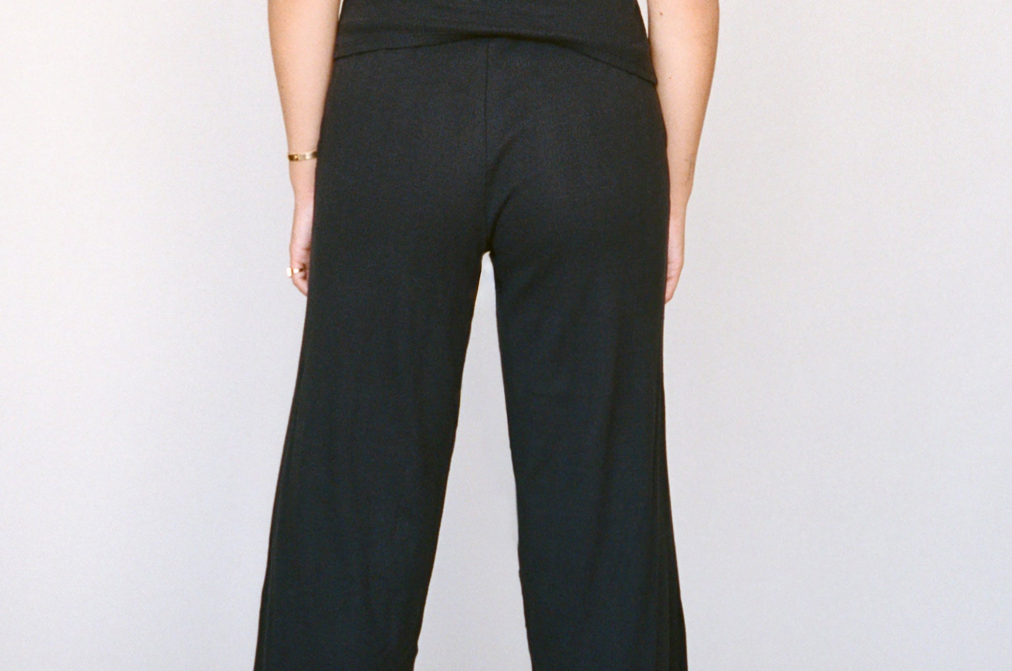 A high rise lounge pant made from 100% organic cotton pointelle with a soft breathable feel. Knitted and sewn in Los Angeles for a fully LA-made piece. Designed with a full length leg and a slightly flared opening for an easy drape. Cut with a flattering tailored shape that feels polished enough to wear out yet relaxed enough for home. Finished with side pockets for everyday ease. Please note: the Swan color way is slightly sheer.