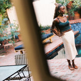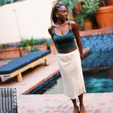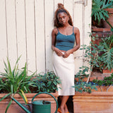 Our scoop back camisole is designed to make an effortless transition from loungewear to a casual going out look. Our signature soft, breathable cotton provides comfortable support for every bust size and cropped hem shows just the right amount of tummy. The deep scoop back is the cherry on top. Each tank top features lace trim and a mother of pearl button at the center. Pair with high waisted jeans and a unbuttoned flannel for a cute summer look.