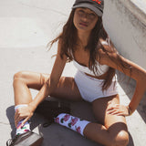 Our varsity hat is inspired by the sports nostalgia - think the sand lot, a league of their own, and vintage varsity letterman jackets. We teamed up with Ventura born and raised chainstitch artist, Isaac, aka SQUEAKSCHAINSTITCH to embroider our limited varsity hat. Isaac uses a 1920s cornely post bed chainstitch machine to handmake every hat so no two are alike. This machine not only is a vintage relic, there are very few of them left because they are no longer made in this style. These hats are available in limited quantities and once they are sold out, we will not be restocking them. This hat is loved by all - even Hozier was seen rocking it in recent concerts with Noah Kahan.